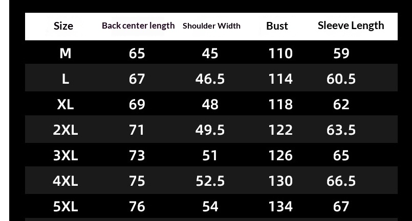 Sizes: M, L, XL, 2XL, 3XL, 4XL, 5XL